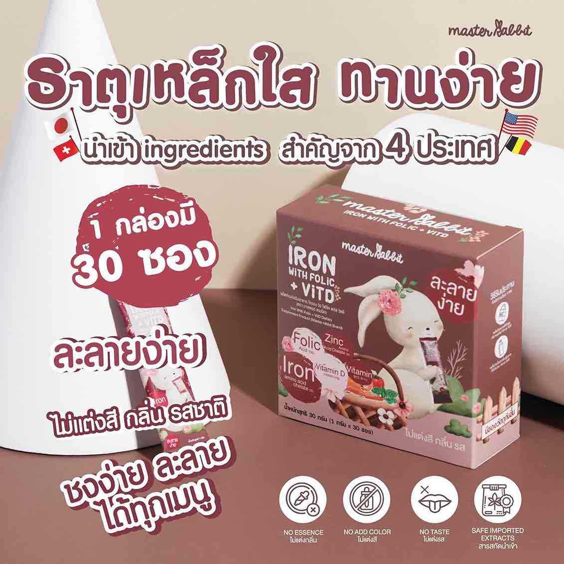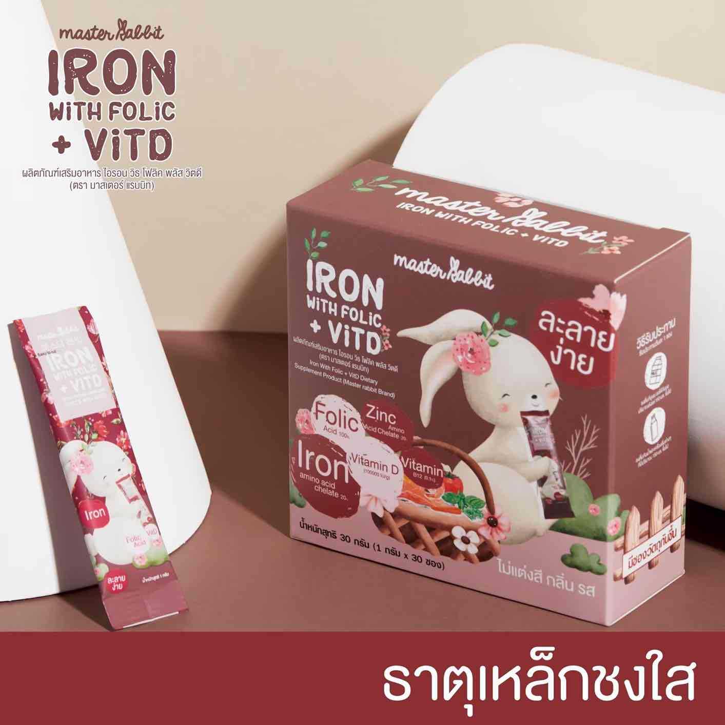 ธาตุเหล็ก และ โฟลิกพลัส วิตดี Master Rabbit Iron With Folic + Vit D มาสเตอร์แรบบิท ไอรอน วิท โฟลิค พลัส วิตดี 30ซอง