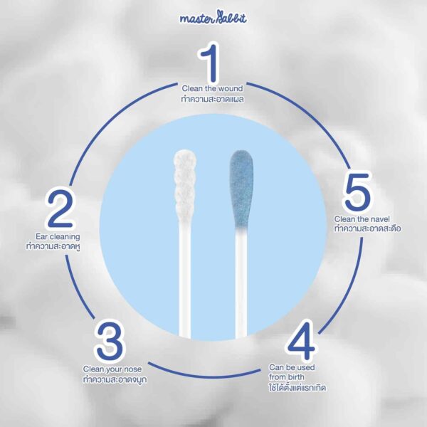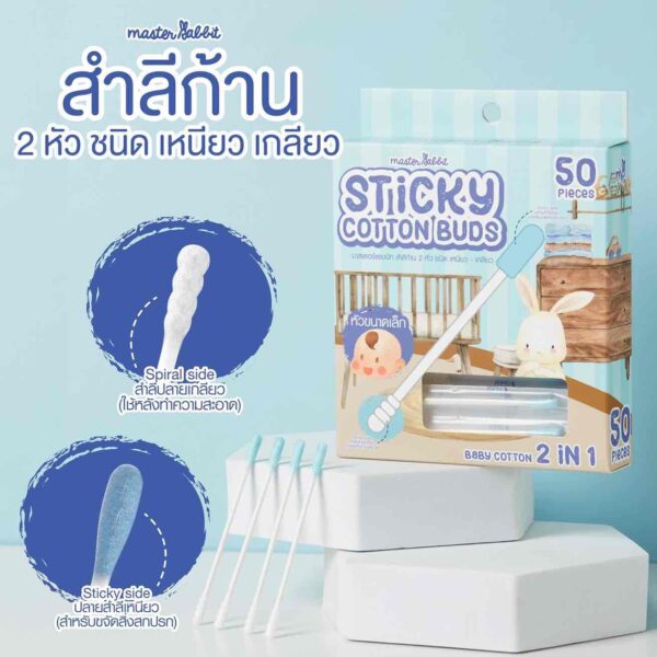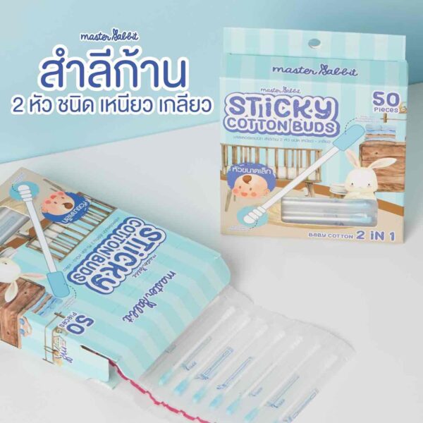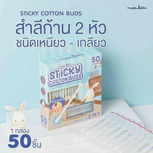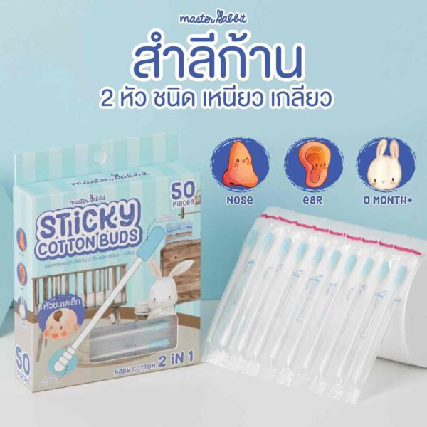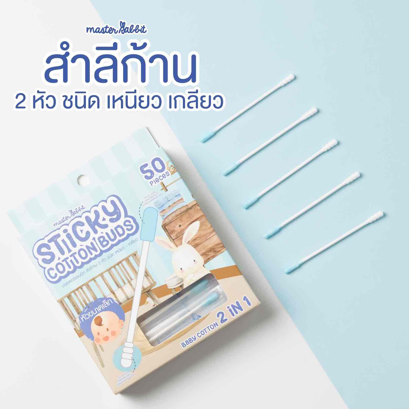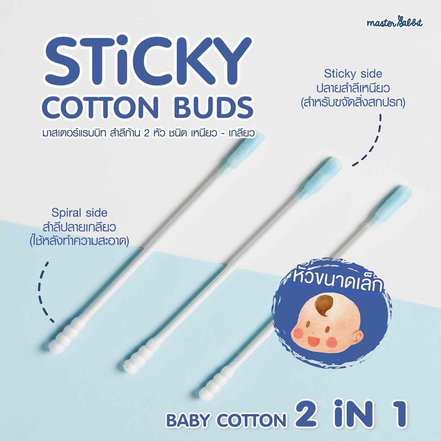 สำลีก้าน สองหัว แคะหู ทำความสะอาดสำหรับลูกน้อย Master Rabbit Sticky Cotton Buds (Baby Cotton 2 in 1)